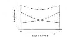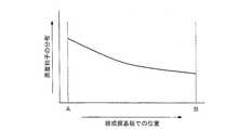 蒸着源280の内部では、供給経路内および射出口内の圧力差、内部形状、コンダクタンス等の影響を受けるため、各射出口281から射出される蒸着粒子の量が異なってくる。具体的には、供給側端部に近い射出口281から順に蒸着粒子が射出されるため、供給側端部から離れるほど蒸着粒子の密度が低くなり、蒸着源280の内部で圧力差が生じる。そのため、蒸着源280の供給側端部からの距離が大きいほど、射出口281からの蒸着粒子の射出量が減少する。それに伴い、様々な射出口281から射出された蒸着粒子の合成によって構成される被成膜基板260上の蒸着膜についても、図14に示すように、基板面内の位置によって、蒸着粒子の量が異なってくる。このため、基板面内で膜厚分布の不均一が生じてしまう。Since the inside of the