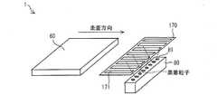 蒸着源280は、蒸着粒子を射出する複数の射出口(ノズル)281を有しており、図13に示すように、射出口281は、1列に配置されている。The