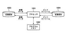 図16に示す情報処理システムは、プロセッサ1001、プログラムメモリ1002、映像データを格納するための記憶媒体1003及びビットストリームを格納するための記憶媒体1004を備える。記憶媒体1003と記憶媒体1004とは、別個の記憶媒体であってもよいし、同一の記憶媒体からなる記憶領域であってもよい。記憶媒体として、ハードディスク等の磁気記憶媒体を用いることができる。The information processing system shown in FIG. 16 includes aprocessor 1001, aprogram memory 1002, astorage medium 1003 for storing video data, and astorage medium 1004 for storing a bitstream. Thestorage medium 1003 and thestorage medium 1004 may be separate storage media, or may be storage areas composed of the same storage medium. A magnetic storage medium such as a hard disk can be used as the storage medium.