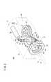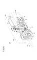歯車38は、ロール歯車軸36のかさ歯車36bと噛み合うかさ歯車38aと、かさ歯車38aと同軸に一体的に設けられた平歯車38bとを有する。平歯車38bは、ロール動作駆動軸40と噛み合っている。従って、ロール操作部24を手動操作で回転させると、その回転が、ロール歯車軸36、歯車38を介してロール動作駆動軸40に伝達される。ロール動作駆動軸40に伝達された駆動力は、図示しない動力伝達部材(ワイヤ、ロッド等)を介して姿勢変更機構20(図1及び図2参照)に伝達される。この結果、エンドエフェクタ11のロール動作が行われる。ロール歯車軸36、歯車38及びロール動作駆動軸40は、ロール操作部24から姿勢変更機構20へ動力を伝達する第1の動力伝達機構32の一部を構成する。Thegear 38 includes abevel gear 38a that meshes with thebevel gear 36b of theroll gear shaft 36, and aspur gear 38b that is provided integrally with thebevel gear 38a. Thespur gear 38 b meshes with the rolloperation drive shaft 40. Therefore, when theroll operation unit 24 is rotated manually, the rotation is transmitted to the rolloperation drive shaft 40 via theroll gear shaft 36 and thegear 38. The driving force transmitted to the rolloperation drive shaft 40 is transmitted to the posture changing mechanism 20 (see FIGS. 1 and 2) via a power transmission member (wire, rod, etc.) not shown. As a result, theend effector 11 rolls. Theroll gear shaft 36, thegear 38, and the rolloperation drive shaft 40 constitute a part of the firstpower transmission mechanism 32 that transmits power from theroll operation unit 24 to theposture changing mechanism 20.