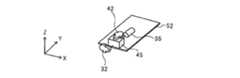 図6(b)は図6(a)に示す状態で携帯端末10を机の上に置いたときの、本体部22内に設けられた基板51を模式的に示す図である。図6(b)に示すように、携帯端末10の本体部22の長辺に沿って平行に基板51に水平用モータ31が実装され、水平用モータ31の軸に水平用偏心部材32が装着されている。水平用モータ31の軸の方向がY軸と一致している。基板51の上面に垂直に垂直用モータ41が実装され、垂直用モータ41の軸に垂直用偏心部材42が装着されている。垂直用モータ41の軸の方向がZ軸と一致している。FIG. 6B is a diagram schematically showing thesubstrate 51 provided in themain body 22 when themobile terminal 10 is placed on the desk in the state shown in FIG. As shown in FIG. 6B, thehorizontal motor 31 is mounted on thesubstrate 51 in parallel along the long side of themain body 22 of themobile terminal 10, and the horizontaleccentric member 32 is mounted on the axis of thehorizontal motor 31. Has been. The direction of the axis of thehorizontal motor 31 coincides with the Y axis. Avertical motor 41 is mounted vertically on the upper surface of thesubstrate 51, and a verticaleccentric member 42 is mounted on the axis of thevertical motor 41. The direction of the axis of thevertical motor 41 coincides with the Z axis.