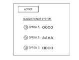 In the display example shown in Fig. 13, future prediction is also displayed.  For example, a message of "There is the number of subjects who have gained GG effects in accordance with execution of the advice of option A" is displayed in the future prediction.  Thus, the subject can obtain references to the future health state when the subject follows the suggested improvement advice.  Therefore, the subject can utilize the future prediction as reference information of the advice selection.