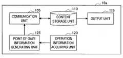 The transmittingdevice 10a according to the first embodiment of the present disclosure mainly includes acommunication unit 105, acontent storage unit 110, anoutput unit 115, an operationinformation acquiring unit 120, and a point of interestinformation generating unit 125.