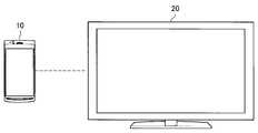 The transmittingdevice 10 and the reproducingdevice 20 may be information processing devices, such as personal computers (PC), domestic video processing devices (such as DVD recorders and video cassette recorders), personal digital assistants (PDA), domestic game machines, and home appliances.  The transmittingdevice 10 and the reproducingdevice 20 may be information processing devices, such as mobile phones, personal handyphone systems (PHS), portable music reproducing devices, portable video processing devices, portable game machines, and portable navigation devices.  In this case, an example of the case in which the transmittingdevice 10 is a mobile phone and the reproducingdevice 20 is a television receiver will be described.