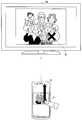 The operationinformation acquiring unit 120 has a function of acquiring operation information input from the outside.  In this case, the acquired operation information may be operation information regarding a designation operation of the point of interest or operation information regarding a transmission operation of the content.  For example, referring to Fig. 4, an example of the designation operation of the point of interest is illustrated.  For example, the designation of the point of interest may be performed by designating a position on a display screen in which touch sensors overlap.  Referring to Fig. 5, an example of a transmission operation for transmitting content and point of interest information to the reproducingdevice 20 is illustrated.  For example, the transmission operation may be made by operating a transmission decision button 33 in a confirmation window displayed when a finger to designate the point of interest is separated from the screen.  However, the operation used in the above case may be exemplary and a variety of different operations may be used.  For example, as illustrated in Fig. 2, the transmission operation may be a flick operation from a designated position of the point of interest.  Alternatively, the operationinformation acquiring unit 120 may have a function of a detecting unit that detects the inclination of the transmittingdevice 10a and the transmission operation may be an operation for inclining a casing.  The operationinformation acquiring unit 120 can supply the acquired operation information to the point of interestinformation generating unit 125.  In another embodiment, the operationinformation acquiring unit 120 may detect a direction of a face of a user and select the content and the point of interest based on the direction detected.