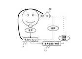 また、音声認識および音声合成を行う音声認識装置60が存在し、音声入出力装置50は、マイクロフォン56a,56bに入力された音を無線通信で音声認識装置60に送信する。また、音声入出力装置50は、無線通信で受信した合成音声を音声認識装置60から受信する。There is also aspeech recognition device 60 that performs speech recognition and speech synthesis, and the speech input / output device 50 transmits the sound input to themicrophones 56a and 56b to thespeech recognition device 60 by wireless communication. Further, the voice input / output device 50 receives the synthesized voice received by wireless communication from thevoice recognition device 60.