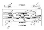 また、音声入出力装置は、音声認識用音声に基づいて音声認識を行う音声認識手段(例えば、音声認識部18)と、音声認識手段による音声認識の結果から合成音声を作成し、作成した合成音声を出力音量調整手段84に入力する音声合成手段(例えば、音声合成部19)とを備えていてもよい。この場合、音声入出力装置は、音声認識装置としての役割を果たす。The voice input / output device creates a synthesized voice from voice recognition means (for example, the voice recognition unit 18) that performs voice recognition based on the voice for voice recognition, and a voice recognition result by the voice recognition means. Voice synthesizing means (for example, the voice synthesizing unit 19) for inputting the sound to the output volume adjusting means 84 may be provided. In this case, the voice input / output device serves as a voice recognition device.