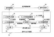 出力音量調整部13は、入力音量調整部11と同様、音声合成部19から入力された合成音声と、モニタ用音量調整部12から入力されたモニタ音声を合わせた音声(以下、出力音声と記す。)の音量を調整する。すなわち、出力音量調整部13は、音量の指定に用いられる操作パネルなどの音量指定部(図示せず)を含み、音量指定部に対する利用者の操作に応じて出力音量を調整する。Similarly to the inputvolume adjustment unit 11, the outputvolume adjustment unit 13 is a sound (hereinafter referred to as an output sound) in which the synthesized voice input from thevoice synthesis unit 19 and the monitor voice input from the monitorvolume adjustment unit 12 are combined. .) Adjust the volume. That is, the outputvolume adjusting unit 13 includes a volume specifying unit (not shown) such as an operation panel used for specifying the volume, and adjusts the output volume according to the user's operation on the volume specifying unit.