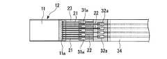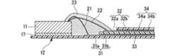 第1実施形態の場合、絶縁フィルム31b,32bを基材とするFPC31,32を複数、接着層33を介して積層し、FPC31,32の金属層のパターニングによって形成した接続部(第1の基板接続部)31a,32aを2段に分けて形成した。これにより、撮像素子チップ11の接続部(第1のチップ接続部)11aのピッチに比べて基板12の接続部(第1の基板接続部)31a,32aの面積を大きく確保することができる。最上段のFPC32の上には、絶縁フィルム34aの片面に接着層34bを形成したカバーレイ34(保護フィルム)が積層されている。In the case of the first embodiment, a plurality of