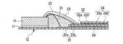撮像素子チップ11の第1の接続部(第1のチップ接続部)11aと基板12の第1の接続部(第1の基板接続部)31a,32aとの間は、ほぼスコープ先端部3の長手方向に沿った方向に延在する第1のリード線21,22によって結線されている。