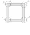 また、略矩形である充電コイル30及びNFCコイル40は、そのコーナー部31a~31d及びコーナー部41a~41dにおいて磁束が集中する。従って、コーナー部31a~31dとコーナー部41a~41dとの距離d1が大きくなれば、それぞれの磁束を他方に奪われることを抑えることができる。すなわち、NFCコイル40のコーナー部41a~41dの最内端部よりも充電コイル30のコーナー部31a~31dの最外端部を緩やかに曲げる(Rを大きく設定する)ことで、対向する辺部分同士間の距離d2よりも対向するコーナー部41a~41dとコーナー部31a~31dとの間の距離d1を大きくすることができる。その結果、磁束の集中しない辺部分は近接させることによって非接触充電モジュール100を小型化することができ、コーナー部間を離すことによってそれぞれの通信(電力伝送)効率を向上させることができる。なお、充電コイル30のコーナー部31a~31dのRは最内端部(中空部)が約2mm、最外端部が約5mm~15mm程度であって、NFCコイル40のコーナー部41a~41dのアールは最内端部(中空部)が約0.1mm、最外端部が約0.2mmである。また、本実施の形態においては、コーナー部31a~31dとコーナー部41a~41dとの距離d1は2mmであり、1.5mm~10mm程度であるとよく、対向する辺部分同士間の距離d2は1mmであり、0.5mm~3mm程度であるとよい。また、好ましくは、d1をd2の3倍以上7倍以下にすることで、小型化と電力伝送効率向上と通信効率向上とをバランスよく達成することができる。Further, in the charging
