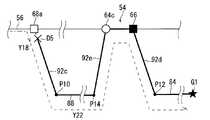 図11、図12において、一般道路88は、指定された出口インターチェンジ66に対して案内ルート50の進行方向手前の出口インターチェンジ68aと一般道路84とを接続する一般道路である。より詳細には、図12に示されるように、出口インターチェンジ68aから地点P10に至るランプ道路92cによって、出口インターチェンジ68aと一般道路88とが接続されている。同様に、出口インターチェンジ66から地点P12に至るランプ道路92dによって、出口インターチェンジ66と一般道路84とが接続されている。11 and 12, ageneral road 88 is a general road that connects thegeneral road 84 to the designatedexit interchange 66 and theexit interchange 68 a before theguide route 50 in the traveling direction. More specifically, as shown in FIG. 12, theexit interchange 68a and thegeneral road 88 are connected by aramp road 92c from theexit interchange 68a to the point P10. Similarly, theexit interchange 66 and thegeneral road 84 are connected by aramp road 92d from theexit interchange 66 to the point P12.