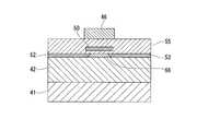 図5は、制御電極46とリング型光導波路50とを含むリング型波長可変フィルタの断面構造を示す。シリコン基板41上に埋め込みシリコン酸化膜42が形成されており、更に、SOI層に不純物ドープして形成したソース領域52及びドレイン領域53が形成されている。ソース領域52とドレイン領域53との間にはチャンネル領域66が形成されており、チャンネル領域66の上方において上部クラッド層55の下側を介して電気的に浮遊したリング型光導波路50が形成されている。また、リング型光導波路50の上方において上部クラッド層55の上側を介して制御電極6が配置されている。リング型光導波路50及びストライプ状光導波路45、49によりリング共振器が構成される。FIG. 5 shows a cross-sectional structure of a ring-type wavelength tunable filter including thecontrol electrode 46 and the ring-typeoptical waveguide 50. A buriedsilicon oxide film 42 is formed on thesilicon substrate 41, and further, asource region 52 and adrain region 53 formed by doping impurities into the SOI layer are formed. Achannel region 66 is formed between thesource region 52 and thedrain region 53, and a ring-typeoptical waveguide 50 that is electrically floating via the lower side of theupper cladding layer 55 is formed above thechannel region 66. ing. Further, thecontrol electrode 6 is disposed above the ring typeoptical waveguide 50 via the upper side of the upper cladlayer 55. The ringoptical waveguide 50 and the stripedoptical waveguides 45 and 49 constitute a ring resonator.