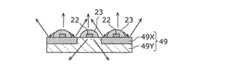 また、図10Cに示すように、基板49の一部を導光素材として、両面発光型のLEDモジュールを構成してもよい。具体的には、透光性アルミナやガラス等の光透過率が高い素材からなる透光性の基板49Yの一部に、白色アルミナ等の光反射率が高い素材からなる基板49Xを埋め込む等して構成された基板49を用意し、基板49X及び基板49Yのそれぞれの表面上にLED22及び封止部材23を形成する。これにより、透光性の基板49Yの表面上に設けられたLED22及び封止部材23からの光は、基板49Xの内部を透過して反対側(下方)から出射する。一方、基板49Xの表面上に設けられたLED22及び封止部材23からの光は、基板49Xを透過せずに基板49Xで反射して上方に向かう。Moreover, as shown to FIG. 10C, you may comprise a double-sided light emission type LED module by using a part of board |
