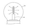 従って、このような従来の電球形LEDランプでは、LEDモジュールが発する光のうちヒートシンク側に放射される光は、金属製のヒートシンクによって遮られてしまうので、白熱電球又は電球形蛍光ランプ等の全配光特性を有するランプとは光の広がり方が異なる。つまり、従来の電球形LEDランプでは、白熱電球又は電球形蛍光ランプ等と同様の広い配光角を実現することが難しい。Therefore, in such a conventional bulb-shaped LED lamp, the light emitted to the heat sink side among the light emitted from the LED module is blocked by the metal heat sink, so that all light bulbs or bulb-shaped fluorescent lamps etc. The spread of light is different from a lamp having light distribution characteristics. That is, it is difficult for the conventional bulb-shaped LED lamp to realize the same wide light distribution angle as an incandescent bulb or a bulb-shaped fluorescent lamp.