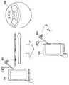 (22) The control system as recited in (1), wherein the control system is included in the mobile device, wherein the mobile device is a smartphone that is operable to connect to a server, that is operable to connect to earphones or headphones, and that further comprises a speaker, a wireless communication section, a near field communication (NFC) reader/writer, a vibration system and a display section, wherein when the smartphone is within proximity, or passes within proximity, of the second device, the smartphone receives from the second device address information for wireless communication with the second device, wherein the address information is received via NFC, and wherein switching comprises establishing a wireless communication path between the smartphone and the second device.
