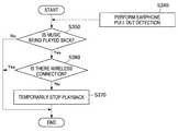 In step S510, the wirelesscommunication control section 133 stands by until the communication path with theaudio device 200 is disconnected. Afterwards, the wirelesscommunication control section 133 proceeds to step S520.