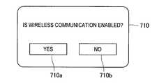 FIG. 29 shows aconfirmation dialog image 710. That is, the voice output destination display/change UI section 122 may display theconfirmation dialog image 710 on thedisplay section 190 before the process of step S90 is performed, that is, before wireless communication is enabled. Theconfirmation dialog image 710 includes text information for inquiring whether or not wireless communication is enabled, a "yes"button 710a, and a "no"button 710b. In the case where the user selects the "yes"button 710a, the wirelesscommunication control section 133 performs the process of step S90, and in the case where the user selects the "no"button 710b, the wirelesscommunication control section 133 ends the processes shown in FIG. 11. In this way, the possibility of performing a connection not intended by the user (for example, a connection to another person's audio device) can be reduced.