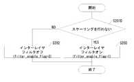 図24~図26は、復号装置における図18~図20に対応する図面である。なお、S301~S311は各々、S401~S411に対応する。 図24は、可変長符号化部25において、フィルタパラメータを含む符号化データを復号する動作を示す図である。可変長符号化部25は各CTBにおいて以下の処理を行う。まず、このフィルタユニットにおいてフィルタパラメータを復号していないことを示すために、フィルタ符号化フラグfilter_coded_flagを0に設定する。(S401)。続いて、CUのループを開始する(S402)。CUのループはCTBに含まれる全てのCUを順に処理することで行われる。続いてPUのループを開始する(S403)。PUのループは該CUに含まれる全てのPUを順に処理することで行われる。ループ内では、フィルタパラメータを除く、予測情報PInfoの内該PUに対応する情報を復号する(S404)。例えば、マージインデックス、マージフラグ、インター予測フラグ、参照リファレンスインデックス、推定動きベクトルインデックス、動きベクトル残差と、が符号化される。続いて、本PUにおいて、参照レイヤ画像が予測画像の生成に用いられるか否かを判定する(S406)、具体的には、参照リファレンスインデックスの示す参照画像が、参照レイヤであるか否かを判定する。参照レイヤである場合には、予測画像に参照レイヤ画像が使用される。参照レイヤ画像が予測画像の生成に用いられる場合(S406でYES)、該フィルタユニットのフィルタパラメータを符号化に遷移する(S406に遷移)。参照レイヤ画像が予測画像の生成に用いられない場合(S406でNO)、該フィルタユニットのフィルタパラメータの符号化は省略される(S410に遷移)。参照レイヤ画像が予測画像の生成に用いられる場合、インターレイヤフィルタを適用するか否かの判定を行う(S406)。この判定の詳細は、既に説明した通り、動き補償パラメータが所定の条件を満たす場合にfilter_enable_flagを1とする。さらに、該PUにインターレイヤフィルタを適用し(filter_enable_flagが1)、かつ、該フィルタユニットにおいてフィルタパラメータが符号化されていない(filter_coded_flag=0)か否かを判定する(S407)、該PUにインターレイヤフィルタを適用し、かつ、該フィルタユニットにおいてフィルタパラメータが符号化されていない場合(S407でYES)、該フィルタユニットのフィルタパラメータを符号化する(S408)。逆に、該PUにインターレイヤフィルタを適用しないか、該フィルタユニットにおいて既にフィルタパラメータが符号化されている場合(S407でNO)、該フィルタユニットのフィルタパラメータの符号化は省略される。S410はPU単位のループの終端、S411はCU単位のループの終端である。FIGS. 24 to 26 are drawings corresponding to FIGS. 18 to 20 in the decoding apparatus. S301 to S311 correspond to S401 to S411, respectively. FIG. 24 is a diagram illustrating an operation for decoding encoded data including a filter parameter in the variablelength encoding unit 25. The variablelength coding unit 25 performs the following processing in each CTB. First, in order to indicate that the filter parameter is not decoded in this filter unit, the filter encoding flag filter_coded_flag is set to 0. (S401). Subsequently, a CU loop is started (S402). The CU loop is performed by sequentially processing all the CUs included in the CTB. Subsequently, a PU loop is started (S403). The PU loop is performed by sequentially processing all PUs included in the CU. In the loop, information corresponding to the PU is decoded from the prediction information PInfo excluding the filter parameter (S404). For example, a merge index, a merge flag, an inter prediction flag, a reference reference index, an estimated motion vector index, and a motion vector residual are encoded. Subsequently, in this PU, it is determined whether or not the reference layer image is used to generate a predicted image (S406). Specifically, it is determined whether or not the reference image indicated by the reference reference index is a reference layer. judge. In the case of the reference layer, the reference layer image is used as the predicted image. When the reference layer image is used to generate a predicted image (YES in S406), the filter parameter of the filter unit is shifted to encoding (transition to S406). When the reference layer image is not used for generating the predicted image (NO in S406), the encoding of the filter parameter of the filter unit is omitted (transition to S410). When the reference layer image is used for generating a predicted image, it is determined whether or not to apply an inter-layer filter (S406). The details of this determination are as follows: filter_enable_flag is set to 1 when the motion compensation parameter satisfies a predetermined condition as described above. Further, an inter-layer filter is applied to the PU (filter_enable_flag is 1), and it is determined whether the filter parameter is not encoded in the filter unit (filter_coded_flag = 0) (S407). When the layer filter is applied and the filter parameter is not encoded in the filter unit (YES in S407), the filter parameter of the filter unit is encoded (S408). On the other hand, if no inter-layer filter is applied to the PU or if the filter parameter has already been encoded in the filter unit (NO in S407), the encoding of the filter parameter of the filter unit is omitted. S410 is the end of the loop in PU units, and S411 is the end of the loop in CU units.