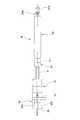 シースアジャスター18の先端部からは、例えばステンレス製の支持パイプ53が突出している。支持パイプ53の先端部は、処置具1を超音波内視鏡100に取り付ける際に、チャンネル107内に挿入される。支持パイプ53は操作本体9内に挿入されている。支持パイプ53の基端は、針スライダ23が操作本体9に対して最も前進された状態において、針スライダ23の先端よりも基端側(例えば図6に示す位置P1)に位置している。シース7は支持パイプ53内に挿通されており、基端部が支持パイプ53の基端から突出して接着等により操作本体9に固定されている。Asupport pipe 53 made of, for example, stainless steel protrudes from the tip of thesheath adjuster 18. The distal end portion of thesupport pipe 53 is inserted into thechannel 107 when thetreatment instrument 1 is attached to theultrasonic endoscope 100. Thesupport pipe 53 is inserted into theoperation body 9. The base end of thesupport pipe 53 is located closer to the base end side (for example, position P1 shown in FIG. 6) than the tip end of theneedle slider 23 in a state where theneedle slider 23 is most advanced with respect to theoperation body 9. Thesheath 7 is inserted into thesupport pipe 53, and the base end portion protrudes from the base end of thesupport pipe 53 and is fixed to theoperation body 9 by adhesion or the like.