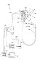 シースアジャスター18には、固定ネジ54が取り付けられている。固定ネジ54は、シースアジャスター18を貫通して操作本体9に設けられた図示しないネジ穴に嵌合している。固定ネジ54を操作本体9に対して締め込むと、シースアジャスター18が操作本体9に押し当てられてシースアジャスター18と操作本体9とを摺動不能に固定することができる。シースアジャスター18と操作本体9との位置関係を変化させることで、操作部8を超音波内視鏡100に固定した際の、チャンネル107からのシース7の突出長を調節することができ、固定ネジ54により当該突出長を固定することができる。The fixingscrew 54 is attached to thesheath adjuster 18. The fixingscrew 54 passes through thesheath adjuster 18 and is fitted in a screw hole (not shown) provided in the operationmain body 9. When the fixingscrew 54 is tightened with respect to the operationmain body 9, thesheath adjuster 18 is pressed against the operationmain body 9, and thesheath adjuster 18 and the operationmain body 9 can be fixed in a non-slidable manner. By changing the positional relationship between thesheath adjuster 18 and the operationmain body 9, the protruding length of thesheath 7 from thechannel 107 when theoperation unit 8 is fixed to theultrasonic endoscope 100 can be adjusted. The protrusion length can be fixed by thescrew 54.
