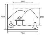 このようにして、画角合わせ部321は、第1画像信号の撮像範囲に実質的に等しい領域を第2画像信号から取り出し、切り出し画像信号を生成する。図6A、図6Bに示す例では、図6Bに破線で示す画素数3840×2160の領域が、こうして切り出された領域である。なお、この切り出し画像信号のフレームレートは、図5に示すように、第2画像信号と同じフレームレート(例えば、30Hz)である。In this way, the angle-of-
