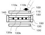 図7において、上部がタッチ面、ディスプレイの視認側になる。態様2ではタッチセンサ板160が偏光板100の内側に挿入されている。上部より押印された力により、タッチセンサ板160、カラーフィルタ基板110、アレイ基板130のそれぞれの裏面、それぞれ160b、110bと130bには引張応力が発生する。そのためこの面に化学強化による圧縮応力がかかっていると、パネルの強度向上に大きな効果がある。In Fig. 7, the upper part is the touch surface and the viewing side of the display. Inaspect 2, thetouch sensor plate 160 is inserted inside thepolarizing plate 100. Due to the force stamped from above, tensile stresses are generated on the back surfaces of thetouch sensor plate 160, thecolor filter substrate 110, and thearray substrate 130, respectively 160b, 110b, and 130b. Therefore, if a compressive stress is applied to this surface due to chemical strengthening, there is a great effect in improving the panel strength.