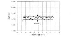 (10)前記最長の交線上におけるc軸長が、前記欠陥増加帯を除く部分においてLc±1.5×10-4Å(ただし、Lcは5.1845以上5.1865未満の値である)の範囲内にあることを特徴とする、前記(8)または(9)に記載の自立GaN基板。(6) The self-standing GaN substrate according to any one of (1) to (5) above, wherein the full width at half maximum of the X-ray rocking curve of the (300) plane in the low strain section is less than 100 arcsec.