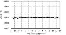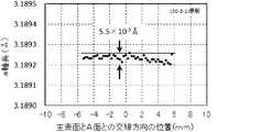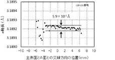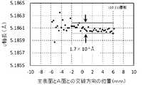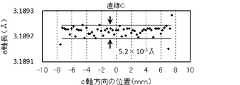 C面GaN/サファイア・テンプレート上にHVPE法によって成長させた、c軸方向のサイズが3.5mmのGaN結晶に、1300℃、6時間の熱処理を行い、該熱処理後のそのa軸長(A面間隔)を測定したところ、c軸方向に沿って3mmにわたり3.18915~3.18920Åの範囲内であったことが報告されている(特許文献5)。The a-axis length (a-axis lattice constant, a-plane spacing, etc.) of a free-standing GaN substrate obtained by separating a GaN crystal grown by a HVPE method on a C-plane sapphire substrate on which a “void buffer layer” is formed. And c-axis length (also referred to as c-axis lattice constant, c-plane spacing, etc.) were reported to be 3.189 mm and 5.185 mm, respectively (Non-patent Document 1).