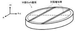 非極性または半極性GaN基板の中でも、特に有用なのは、(10-10)基板、(20-21)基板、(20-2-1)基板、(30-31)基板および(30-3-1)基板である。(10-10)基板(M面基板)は非極性基板であり、(20-21)基板、(20-2-1)基板、(30-31)基板および(30-3-1)基板は、半極性基板である。Improvement of nitride semiconductor devices by using a self-supporting nonpolar or semipolar GaN substrate is expected (Non-patent Document 2). Nitride semiconductors are also called GaN-based semiconductors, group III nitride-based compound semiconductors, nitride-based III-V group compound semiconductors, etc. In addition to containing GaN (gallium nitride), part or all of Ga in GaN And compounds substituted with