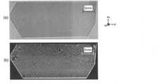 直径2インチのC面GaNテンプレート上にHVPE(Hydride Vapor Phase Epitaxy)法を用いてGaN結晶をc軸成長させ、そのGaN結晶を非極性または半極性面が主表面となるようにスライスすることにより、バー形状の非極性または半極性GaN基板を得ることができる(特許文献1)。更に、そのバー形状のGaN基板を複数枚並べたものをシードとして気相成長させたGaN結晶から、板状の非極性または半極性GaN基板を作製することができる(特許文献1~3)。By c-axis growth of a GaN crystal using a HVPE (HydrideGaNVapor Phase Epitaxy) method on a 2-inch diameter C-plane GaN template, and slicing the GaN crystal so that the nonpolar or semipolar surface is the main surface A bar-shaped nonpolar or semipolar GaN substrate can be obtained (Patent Document 1). Furthermore, a plate-like nonpolar or semipolar GaN substrate can be produced from a GaN crystal that is vapor-phase grown using a plurality of bar-shaped GaN substrates arranged as seeds (