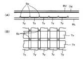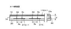同様に、隣り合う第2の導体21Yにおけるスペーサ間のY方向の距離、すなわち、第2の導体21Yj-1のスペーサSbまたはScと、その隣の第2の導体21YjのスペーサSaまたはSdとの距離tyは、第2の導体21Yの配列ピッチPy(=3.2mm)よりも小さく、また、クロスポイントの領域内における4個のスペーサSa、Sb、Sc、SdのY方向の互いの離隔距離Gyよりも大きくされる。つまり、Gy<ty<Pyとされ、この例では、距離ty=2.2mmとされる。Similarly, the distance in the Y direction between the spacers in the adjacentsecond conductor 21Y, that is, the spacer Sb or Sc of the second conductor 21Yj-1 and the spacer Sa or Sd of the adjacent second conductor 21Yj. The distance ty is smaller than the arrangement pitch Py (= 3.2 mm) of thesecond conductors 21Y, and the four spacers Sa, Sb, Sc, Sd are separated from each other in the Y direction within the cross point region. It is made larger than Gy. That is, Gy <ty <Py, and in this example, the distance ty = 2.2 mm.