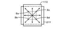なお、図3においては、第2の導体21Y上に在るスペーサSa~Sdは、透明の第1の導体11Xを通して見えるものとして実線で示したが、実際上は、透明であると共に、その大きさが小さいことから殆ど目につくことはない。このことは、図3と同様に表される他の図についても同様である。In FIG. 3, the spacers Sa to Sd on thesecond conductor 21Y are shown by solid lines as being visible through the transparentfirst conductor 11X. Because of its small size, it is hardly noticeable. The same applies to other figures represented in the same manner as FIG.