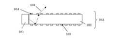 拡散反射パターンの配置については、上述の通りである、一方、量子ドットパターン104は、光源側ほど小さく、反光源側ほど大きく形成してもよく、この逆に、光源側ほど大きく、反光源側ほど小さく形成してもよい。または、すべて同一サイズで量子ドットパターンを形成することも可能である。また、拡散反射パターンの密度については、面内全域で同一の密度で形成してもよく、拡散反射パターンの形成密度を、光源側ほど小さく、反光源側ほど大きくしても、その逆としてもよい。The arrangement of the diffuse reflection pattern is as described above. On the other hand, thequantum dot pattern 104 may be formed smaller on the light source side and larger on the opposite light source side, and conversely larger on the light source side and on the opposite light source side. You may form so small. Alternatively, it is possible to form quantum dot patterns all with the same size. In addition, the density of the diffuse reflection pattern may be the same density throughout the entire surface, and the density of the diffuse reflection pattern may be smaller on the light source side, larger on the counter light source side, or vice versa. Good.