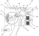 試薬ディスク111には、複数の試薬容器118が設置されている。試薬ディスク111の上部には試薬ディスクカバー112(図1は左部分を一部破断した図である)が設けられていて、試薬ディスク111の内部は所定の温度に保温される。試薬ディスクカバー112には、インキュベータディスク104側の部分に開口部113が設けられている。On thereagent disc 111, a plurality ofreagent containers 118 are installed. A reagent disc cover 112 (FIG. 1 is a partially broken left view) is provided on the top of thereagent disc 111, and the inside of thereagent disc 111 is kept warm at a predetermined temperature. Thereagent disc cover 112 is provided with an opening 113 at a portion on theincubator disc 104 side.