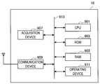 As illustrated in FIG. 2, the reader/writer 10 includes a central processing unit (CPU) 901, read-only memory (ROM) 903, random access memory (RAM) 905, anacquisition device 907, acommunication device 909, anoperating device 911, and abus 913.
