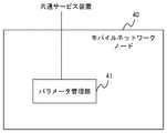 続いて、図4を用いて本発明の実施の形態2にかかるモバイルネットワークノード40の構成例について説明する。モバイルネットワークノード40は、パラメータ管理部41を有している。Subsequently, a configuration example of themobile network node 40 according to the second exemplary embodiment of the present invention will be described with reference to FIG. Themobile network node 40 has aparameter management unit 41.