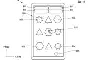 以上のように、ユーザは、携帯端末2が操作パッド200L及び操作パッド200Rを備えていなくても、携帯端末1と同様に、ポインタ920を移動させて、指が届かない範囲に表示されたアイコン901、アイコン902、及びメニューアイコン911~メニューアイコン914に対して操作入力を行うことができる。また、ユーザは、携帯端末1と同様に、1回の動作でメニューアイコン911~メニューアイコン914に対して操作入力を行うことができる。As described above, even if themobile terminal 2 does not include theoperation pad 200L and theoperation pad 200R, the icon displayed in the range where the finger cannot reach by moving thepointer 920 in the same manner as themobile terminal 1. Operation input can be performed on theicons 901, theicons 902, and themenu icons 911 to 914. Further, similarly to themobile terminal 1, the user can perform an operation input on themenu icons 911 to 914 with one operation.