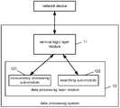 Based on the descriptions of FIGS. 1A to 3B, according to various examples of the present disclosure, the service logic layer module can model a wide variety of application protocols, identify classification of the application protocols, and perform intelligent decision-making based on the model identification, which can improve the data processing accuracy. In addition, the concurrency processing sub-module can realize concurrent execution of a single task, which can solve an issue where the single task cannot be concurrently executed. Further, the searching sub-module that costs many CPU resources is removed from the network device and is configured in the data processing system described in various examples of the present disclosure, and the searching operation is implemented in an isomerous manner. In this way, the I/O concurrency at a task level can be implemented and the deficiencies in the network resources of the network device can be avoided. In this case, the isomerous manner may refer to a manner in which the service logic layer module and the data processing layer module are separately deployed and perform asynchronous processing.