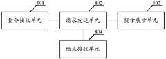 本发明实施例还提供了一种终端,如图8所示,包括:指令接收单元801、请求发送单元802、提示展示单元803和结果接收单元804。The embodiment of the present invention further provides a terminal, as shown in FIG. 8, comprising: aninstruction receiving unit 801, arequest sending unit 802, aprompt display unit 803, and aresult receiving unit 804.