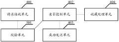 由于身份校验有时候会因用户输入错误等原因导致校验失败,为了避免一次校验失败导致的收藏请求拒绝,本发明实施例提供了如下解决方案:所述校验单元501,还用于若校验失败,则进行重校验,若仍失败,则拒绝所述收藏请求。The present invention provides the following solution: theverification unit 501 is also used for the identity verification, which may cause a verification failure due to a user input error or the like. In order to avoid the rejection of the collection request caused by a verification failure, the embodiment of the present invention provides the following solution: If the verification fails, re-verification is performed, and if it still fails, the collection request is rejected.