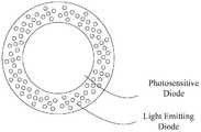 As shown in Figure 7a, a photosensitive diode is placed in the circular center and a plurality of LEDs are placed surrounding the center in a circular arrangement. As shown in Figure 7b, a photosensitive diode is placed in the rectangular center and a plurality of LEDs are placed surrounding the center in a rectangular arrangement. Other arrangements may also be used.