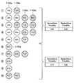 図14は、図12の処理におけるプレーパターンに基づくゲームの種類の推定の例を示す図である。図14には、ラリーセグメント(1~10の番号で示す)ごとに抽出されたプレーイベント1109の配列が示されている。図示された例において、プレーイベント1109は、サーブ1109a、フォアハンドストローク1109b、フォアハンドスライス1109c、バックハンドボレー1109d、およびバックハンドスライス1109eを含む。FIG. 14 is a diagram showing an example of game type estimation based on the play pattern in the processing of FIG. FIG. 14 shows an array of play events 1109 extracted for each rally segment (indicated bynumbers 1 to 10). In the illustrated example, play events 1109 includeserve 1109a,forehand stroke 1109b,forehand slice 1109c,backhand volley 1109d, andbackhand slice 1109e.