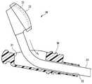 本実施形態では一例として、超音波振動子部20の上面20aは外側(上方)に向かって凸形状の円筒面形状に湾曲している。超音波振動子部20を構成する複数の振動子素子22は、上面20aの円周方向に沿って1列に配列されている。In the present embodiment, as an example, theupper surface 20a of theultrasonic transducer section 20 is curved into a convex cylindrical surface shape toward the outside (upward). The plurality oftransducer elements 22 constituting theultrasonic transducer section 20 are arranged in a line along the circumferential direction of theupper surface 20a.