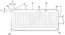言い換えるならば、上面20aに対向する方向から見た場合における、音響レンズ23の面取り部23aによって切り落とされた部分の形状は、振動子素子22の配列方向に平行な辺の長さL1が、この長さL1の辺に直交する辺の長さL2よりも長い直角三角形となる。In other words, when viewed from the direction facing theupper surface 20a, the shape of the portion cut off by the chamferedportion 23a of theacoustic lens 23 is the length L1 of the side parallel to the arrangement direction of thetransducer elements 22, It becomes a right triangle longer than the length L2 of the side orthogonal to the side of the length L1.