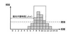 距離値分布解析部104が算出した距離値の分布特性に基づいて、信号調整部105は、照射制御部106及び露出制御部107の調整値を算出する(S805)。具体的には、分布特性の結果に基づいて最近距離(N)を算出し、最近距離(N)に基づいて露光不要時間(Δα)を算出し、露光不要時間(Δα)に基づいて露光開始時間(EXS)を算出し、露光不要時間(Δα)に基づいて照射回数(EC)と露光回数(EXC)とを算出する。Based on the distribution characteristics of the distance values calculated by the distance valuedistribution analysis unit 104, thesignal adjustment unit 105 calculates adjustment values of theirradiation control unit 106 and the exposure control unit 107 (S805). Specifically, the nearest distance (N) is calculated based on the result of the distribution characteristic, the exposure unnecessary time (Δα) is calculated based on the nearest distance (N), and the exposure starts based on the exposure unnecessary time (Δα). Time (EXS) is calculated, and the number of times of irradiation (EC) and the number of times of exposure (EXC) are calculated based on the exposure unnecessary time (Δα).