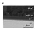 An amorphous silicon thin film was formed on the graphene laminated film, and a nanowire array was fabricated by metal-assisted chemical etching (Adv. Mater. 23 (2011) 285). The base agent of PDMS (poly (dimethylsiloxane)) used as the resin and the curing agent were mixed and stirred for 5 minutes. This was spin-cast on a sample substrate and baked at 120 ° C. for 15 minutes after natural drying for about 12 hours. After the resin was cured, it was peeled off using a protective sheet. The peeling was performed between graphene oxide and graphene, which are sacrificial layers for peeling (aspect (c) in FIG. 2).