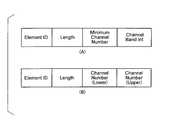 図5(A)および図5(B)に、チャネル範囲エレメントのフォーマットの例をそれぞれ示す。図5(A)の例では、チャネル範囲エレメントとして、最小チャネル番号(Minimum Channel Number)とチャネル幅情報(Channel Band Information)を、情報フィールドに格納する。また、図5(B)の例では、最小チャネル番号(Channel Number (Lower))及び最大チャネル番号(Channel Number (Upper))を、情報フィールドに格納する。5A and 5B show examples of channel range element formats, respectively. In the example of FIG. 5A, the minimum channel number (Minimum Channel Number) and channel width information (Channel Band Information) are stored in the information field as channel range elements. In the example of FIG. 5B, the minimum channel number (Channel Number (Lower)) and the maximum channel number (Channel Number (Upper)) are stored in the information field.