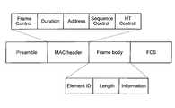 前述したアソシエーション要求フレームまたはアソシエーション応答フレーム等の管理フレームは、このフレームフォーマットを備える。本フレームフォーマットは、プリアンブル(Preamble)、MACヘッダ(MAC header)、フレームボディ(Frame body)及びFCSの各フィールドを含む。MACヘッダはFrame Control, Duration, Address, Sequence Control及び HT(High Throughput) controlの各フィールドを含む。ただし、HT Control フィールド等は含まないフレームフォーマットを用いてもよい。Addressフィールドは、宛先となる端末のMACアドレスを格納するRA(Receiving Address)フィールド、送信元の端末のMACアドレスを格納するTA(Transmitting Address)フィールドなど、複数のフィールドを実際には含む。Management frames such as the above-described association request frame or association response frame have this frame format. This frame format includes fields of a preamble, a MAC header, a frame body, and an FCS. The MAC header includes fields of Frame Control, Duration, Address, Sequence Control, and HT (High Throughput) control. However, a frame format that does not include the HT Control field may be used. The Address field actually includes a plurality of fields such as an RA (Receiving Address) field for storing the MAC address of the destination terminal and a TA (Transmitting Address) field for storing the MAC address of the transmission source terminal.