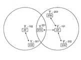 基地局(AP:Access Point)101に、端末(STA:STAtion)201,202,203が接続して、1つの無線通信システムもしくは無線通信グループを形成している。接続とは、無線リンクを確立した状態を意味しており、基地局とのアソシエーションプロセスを経て、通信に必要なパラメータの交換が完了することで、無線リンクが確立される。Terminals (STAs) 201, 202, and 203 are connected to a base station (AP: Access Point) 101 to form one wireless communication system or wireless communication group. The connection means a state in which a radio link is established, and a radio link is established by completing the exchange of parameters necessary for communication through an association process with the base station.